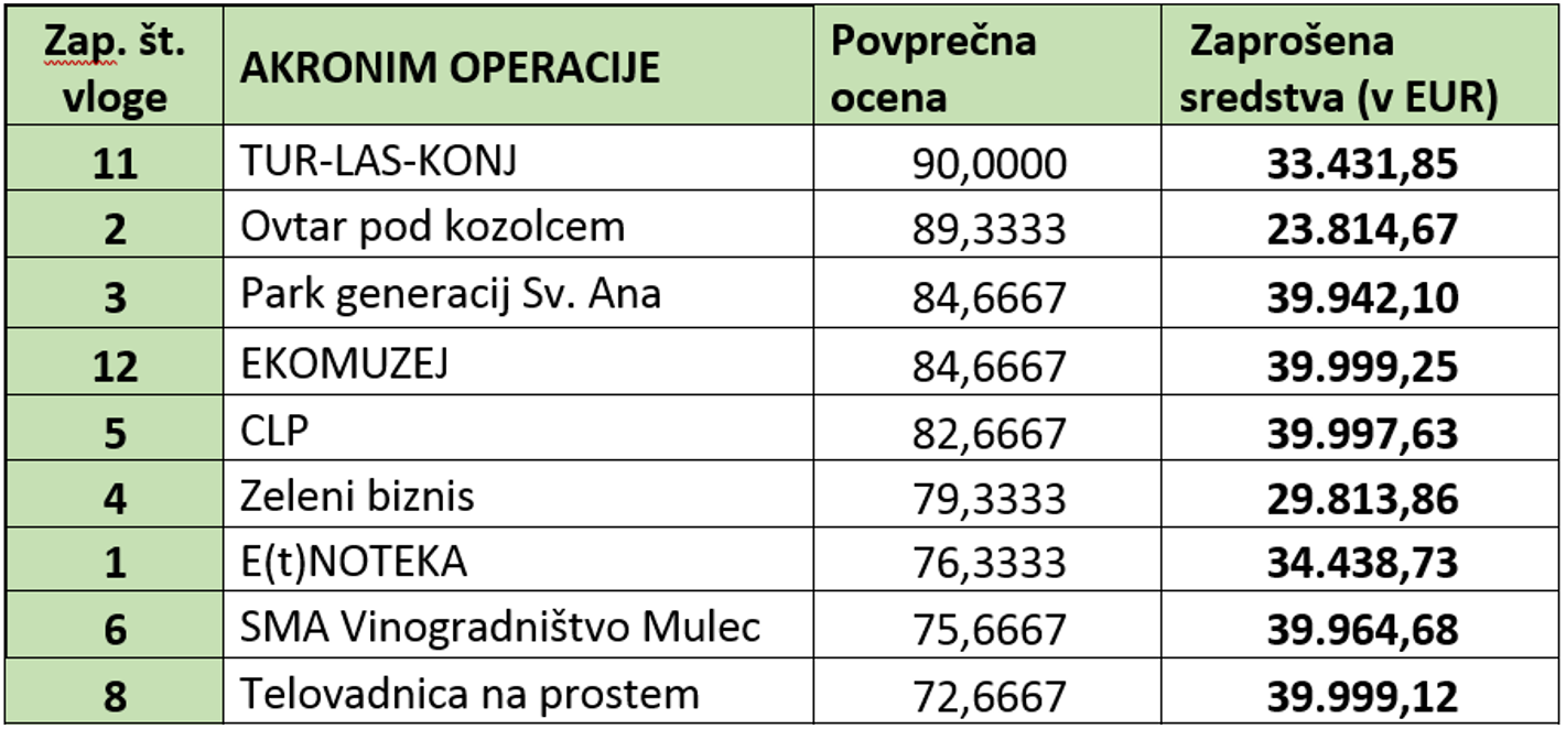Vlagatelji so bili o izboru pisno obveščeni s strani vodilnega partnerja LAS Ovtar Slovenskih goric, RASG d.o.o.